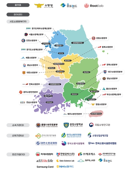 소방안전 빅데이터 플랫폼 참여센터 현황. 자료제공 소방청