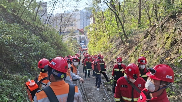 이번 훈련은 최근 경북 지역에서 이어진 산불의 영향을 반영해 산불 재난 대응의 중요성이 커짐에 따라 마련됐다. 특히, 경산시노인종합복지관은 하루 평균 1,000명 이상의 시민이 이용하는 대규모 시설로, 이용객 대부분이 고령층인 만큼 재난 발생 시 신속하고 안전한 대피체계 구축이 절실했다. 이에 시는 ‘산불 발생 시 재난 취약 계층 대피 및 건물 화재 대응’을 주제로 실전형 훈련을 펼쳤다.