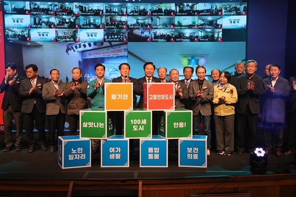 안동시(시장 권기창)는 11월 11일(화) 안동시민회관 낙동홀에서 ‘안동시 고령친화도시(AGE-FRIENDLY CITY) 선포식’을 열고, 100세 행복도시를 향한 굳건한 의지를 밝혔다.