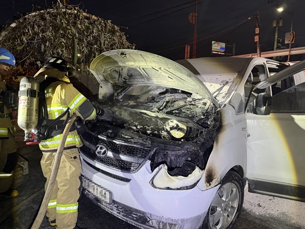 소방서에 따르면 이날 오전 6시 15분께 근무자들을 태우기 위해 잠시 정차 중이던 신고자는 시동이 갑자기 꺼지며 타는 냄새가 나는 것을 확인했다.