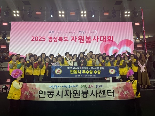 안동시(시장 권기창)는 19일 영천체육관에서 개최된 ‘2025 경상북도 자원봉사 대회’에서 도내 22개 시․군 중 자원봉사 우수 시군 평가 분야 ‘우수상’을 수상했다.