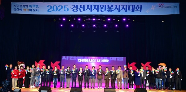 경산시자원봉사센터(소장 류진열)는 6일, 경산시민회관 대강당에서 자원봉사자와 관계자 등 600여 명이 참석한 가운데 자원봉사자의 날을 기념하여 「2025 경산시 자원봉사자 대회」를 개최했다.