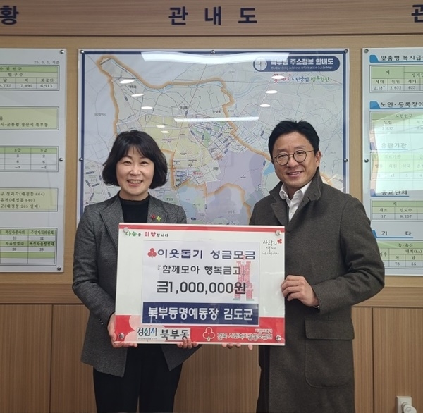 김현주 북부동장은“지역사회를 위해 늘 관심과 애정을 보내주시는 명예 동장님의 따뜻한 나눔에 깊이 감사드리며, 기탁해 주신 성금은 도움이 필요한 이웃들에게 소중히 전달하겠다”고 답했다.