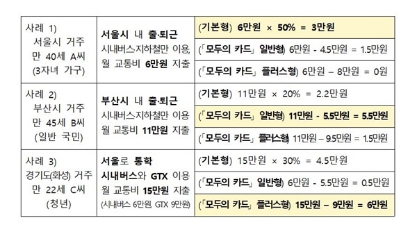 먼저, 한 달 동안 환급 기준금액을 초과하여 대중교통비를 지출한 경우 초과분에 대해 모두 돌려받을 수 있는 「모두의 카드」를 도입한다. 이를 통해 출퇴근, 통학 등으로 대중교통을 자주 이용하는 이용자의 교통비 부담이 크게 줄어들 것으로 예상된다.