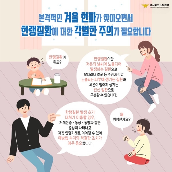 경북소방본부는 특히 한파 시 저체온증, 동상, 동창 등 주요 한랭질환 발생 위험이 커지는 만큼, 외출 전 체온 유지와 방한 대비를 반드시 해달라고 강조했다.