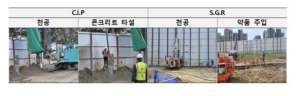 ④(지하 굴착공사 공법 추가) 지하안전 확보을 위해 기초공사에 많이 사용되고 있는 주열식 현장벽체 공법(C.I.P) 및 차수 그라우팅(S.G.R) 공법 활용을 위한 원가기준을 신설한다.