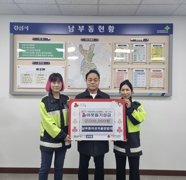 최완규 남부동자율방범대장은 “지역의 안전을 지키는 활동뿐만 아니라 어려운 이웃을 돕는 나눔에도 함께할 수 있어 뜻깊다”며, “앞으로도 지역사회에 보탬이 되는 다양한 활동을 이어가겠다”고 전했다.