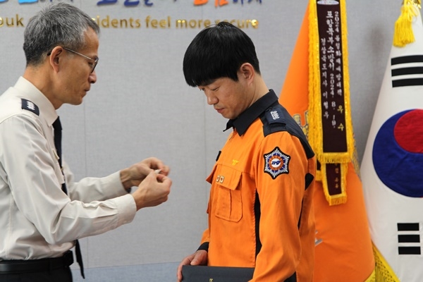 포항북부소방서(서장.김장수)는 8일 2026년 상반기 하트세이버 수여식을 열고, 심폐소생술(CPR) 등 신속한 응급처치로 심정지 환자의 생명을 구한 소방관 17명에게 표창장과 인증 배지를 수여했다고 밝혔다.
